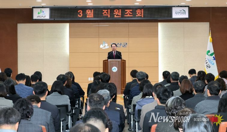 뉴스펀치 이현승 기자 | 충북 괴산군은 3일 군청 대회의실에서 3월 직원조회를 열고 민생안정지원금 신청률 98.4% 달성에 따른 직원들의 노고를 격려하고 봄철 주요 현안업무에 전 행정력을 집중해 줄 것을 당부했다.