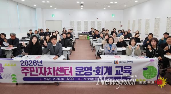 뉴스펀치 박상훈 기자 | 안성시는 2월 26일 오후 4시 안성맞춤아트홀 4층 대회의실에서 15개 읍·면·동 주민자치 위원(회)장, 간사, 업무 담당 공무원 등 45명을 대상으로 ‘2026년 주민자치센터 운영·회계 교육’을 실시했다.