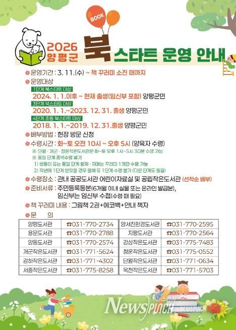 뉴스펀치 박상훈 기자 | 양평군은 오는 11일부터 ‘2026년 북스타트 사업’을 본격 운영한다고 밝혔다.