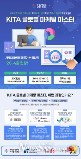 용산구는 글로벌 무역 분야 취업연계 교육과정인 ‘제49기 KITA 무역마스터’와 ‘KITA 글로벌 마케팅 마스터’ 교육생을 각각 모집한다고 밝혔다. 이번 사업은 글로벌 무역 실무 역량을 갖춘 전문 인력을 체계적으로 양성해 국내·외 우수 기업으로의 취업을 지원하기 위해 마련됐다.