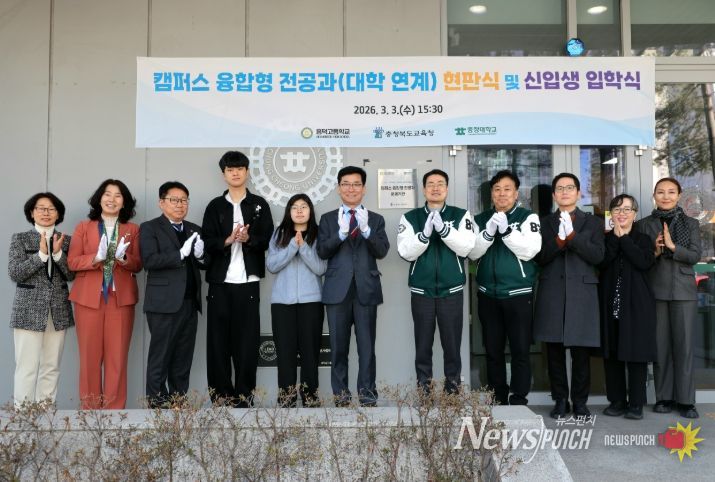 뉴스펀치 이현승 기자 | 충청북도교육청은 3일, 흥덕고등학교(교장 노재민)와 충청대학교가 함께 운영하는 캠퍼스 융합형 전공과 신입생 입학식을 열고, 운영기관 현판식을 가졌다고 밝혔다.