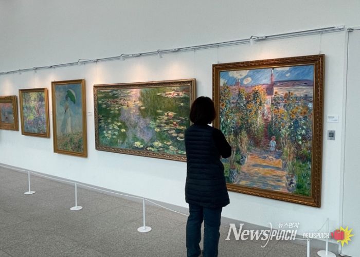 뉴스펀치 박상훈 기자 | 모담도서관에서는 3월부터 5월까지 '생동(生動): 봄이 그림이 되는 순간'을 주제로 프랑스 인상주의 거장 클로드 모네의 작품을 1층 로비에 전시한다.