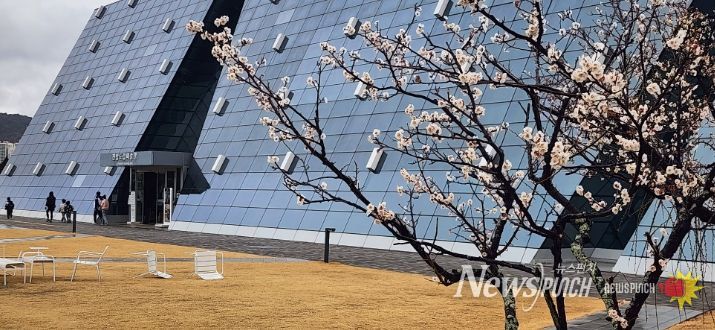 뉴스펀치 김용희 기자 | 광양시 원도심에 위치한 전남도립미술관 앞 고목 매화가 개화하며 도심 경관에 활력을 더하고 있다.