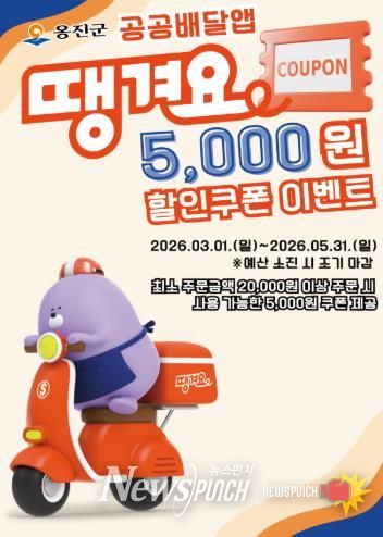 뉴스펀치 조평훈 기자 | 옹진군은 지역 소상공인의 매출 증대와 군민의 생활비 부담 완화를 위해 공공배달앱 '땡겨요' 할인쿠폰 이벤트를 시행한다고 밝혔다.