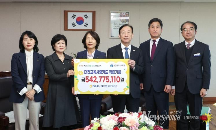 뉴스펀치 이현승 기자 | 대전시교육청은 지난해 각급 학교와 산하기관 및 교직원이 대전교육사랑카드를 사용하여 모은 적립금 5억 4,200만 원을 3월 4일 NH농협은행 대전본부로부터 전달받았다고 밝혔다.