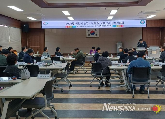 뉴스펀치 박상훈 기자 | 이천시는 3월 3일 농업기술센터 회의실에서 농업·농촌 및 식품산업 정책심의회 위원과 관계 공무원 등 50여 명이 참석한 가운데 2026년 농림축산식품사업 농정심의회를 개최했다.