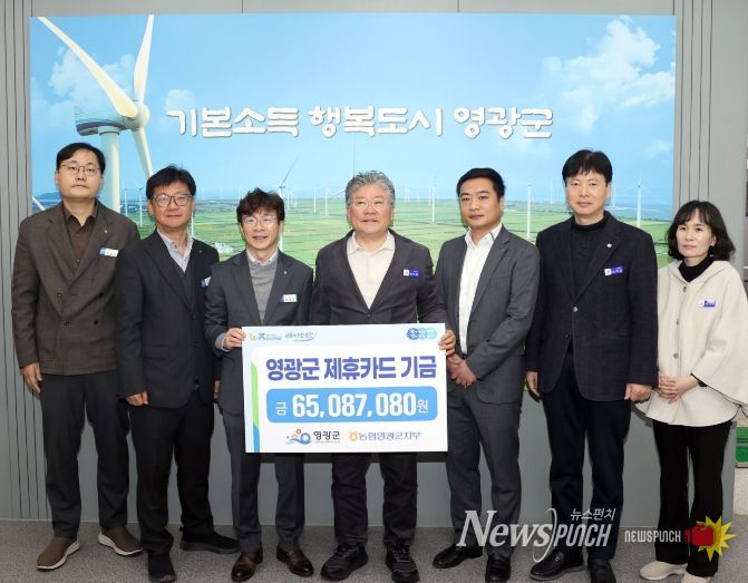 뉴스펀치 김용희 기자 | 영광군은 지난 3월3일 NH농협은행 영광군지부가 제휴카드 협약을 통해 조성한 적립금 6,500여만 원을 영광군에 전달했다고 밝혔다.