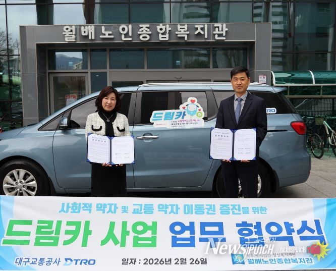 뉴스펀치 조평훈 기자 | 대구교통공사는 2026년 3월부터 지역 내 교통약자와 소외계층의 이동 편의 증진을 위해 추진 중인‘드림카 사업’을 달서구 월배노인종합복지관까지 확대 운영한다.