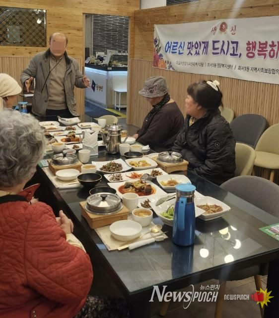 뉴스펀치 박상훈 기자 | 수원시 팔달구 화서1동은 지난 4일, 3월 생일을 맞이한 독거어르신 9명을 모시고 이교수한정식(대표 이태석)에서 '어르신 사랑의 생신상' 행사를 진행했다.