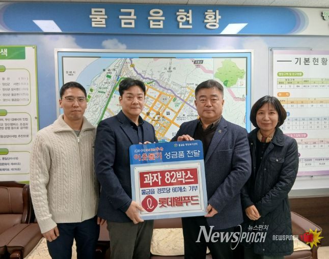 뉴스펀치 박세훈 기자 | 롯데웰푸드 주식회사(대표 최명완)는 지난 3월 5일 물금읍 행정복지센터를 방문하여 지역 내 경로당(60개소)에 전달할 과자 82박스를 기탁했다.