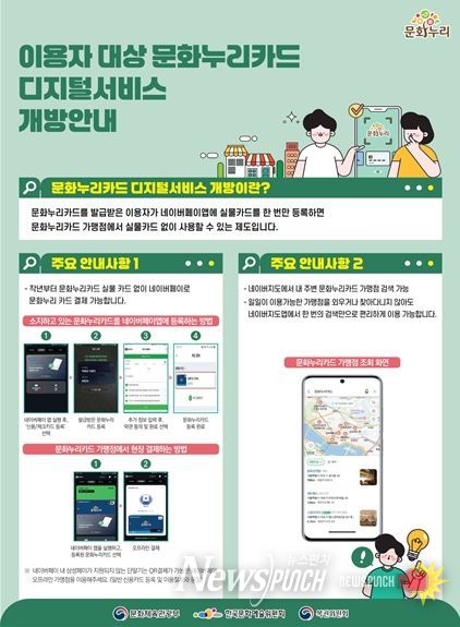 문화누리카드 디지털서비스 개방에 따라 카드 이용자는 네이버페이 앱에 실물카드를 1회 등록하면, 이후 실물카드 없이도 문화누리카드 가맹점에서 간편결제를 이용할 수 있다.