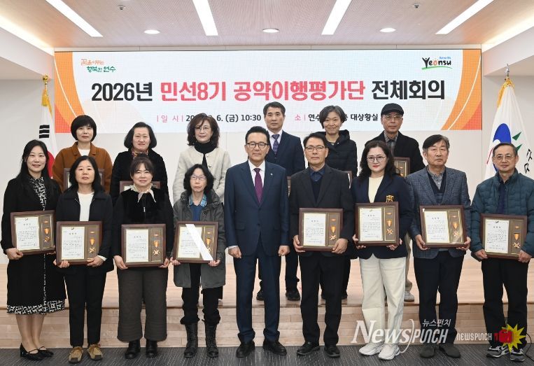 연수구는 지난 6일 대상황실에서 공약이행평가단 위원들이 참석한 가운데 ‘2026년 민선 8기 공약이행평가단 전체 회의’를 개최했다.