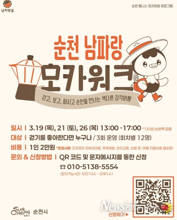 뉴스펀치 김용희 기자 | 순천시는 코리아둘레길 남파랑길의 아름다운 바닷길을 걸으며 커피 향과 함께 휴식을 즐기는 ‘순천 남파랑 모카워크’를 오는 19일, 21일, 26일 3일간 운영한다고 밝혔다.
