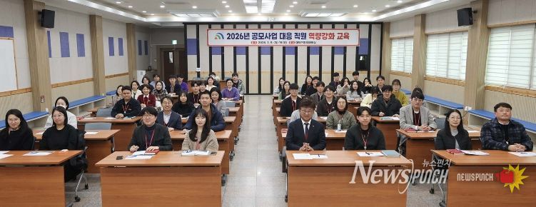 뉴스펀치 이현승 기자 | 대전 대덕구는 9일 구청 대회의실에서 부서별 공모사업 담당 공무원을 대상으로 ‘2026년 공모사업 대응 직원 역량강화 교육’을 실시했다.