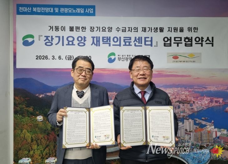 뉴스펀치 김윤걸 기자 | 부산 서구는 지난 6일 서구 내 소재한 건민부부한의원과 ‘장기요양 재택의료센터 시범사업’을 위한 업무협약을 체결했다.