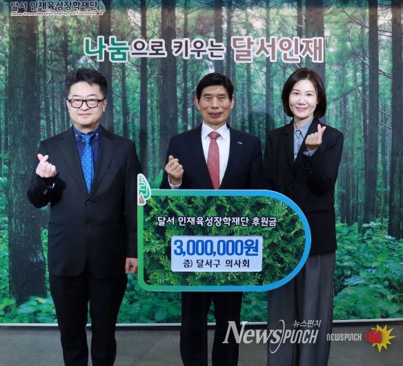 뉴스펀치 조평훈 기자 | 대구 달서구는 달서구 의사회(회장 배상근)가 지역 인재 육성을 위해 써달라며 300만원의 후원금을 (재)달서인재육성장학재단에 전달했다고 10일 밝혔다.