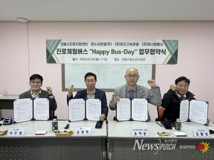 뉴스펀치 박상훈 기자 | 의왕시청소년재단 산하 의왕시진로지원센터 ‘꿈터’가 청소년들의 진로 탐색을 지원하기 위해 3월 9일 관내 운수업체와 ‘진로체험버스’ 운영을 위한 업무협약(MOU)을 체결했다.