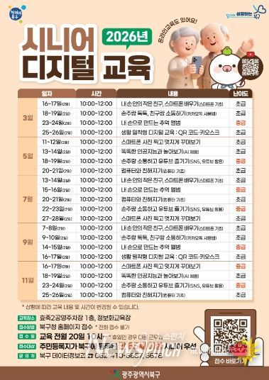 교육 대상은 북구에 주소를 둔 만 65세 이상 주민이며 회차별 20명을 선착순 모집한다.