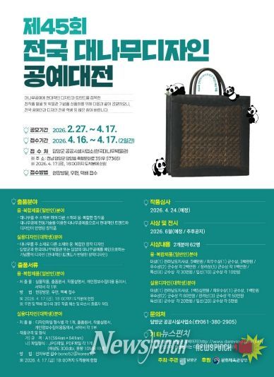 뉴스펀치 최영남 기자 | 대나무의 고장 담양군이 유구한 역사를 자랑하는 국내 유일의 대나무공예 공모전인 ‘제45회 전국대나무디자인공예대전’을 개최한다.