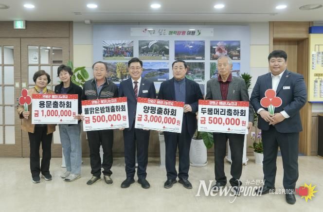 뉴스펀치 박상훈 기자 | 양평군은 지난 9일 양평출하회 300만 원, 용문출하회 100만 원, 두물머리출하회 50만 원, 물맑은쌈채출하회 50만 원 등 총 4개 출하회에서 500만 원의 해피나눔성금을 기탁했다고 밝혔다.