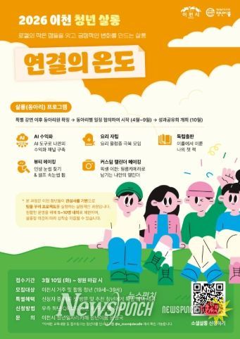뉴스펀치 박상훈 기자 | 이천시 청년일자리카페 청년이룸(이천시 경충대로 2701-32)은 지역 청년들의 관계망 형성 및 역량 강화를 위한 청년이룸 네트워킹 데이 ‘연결의 온도’ 참가자를 3월 10일부터 모집한다고 밝혔다.