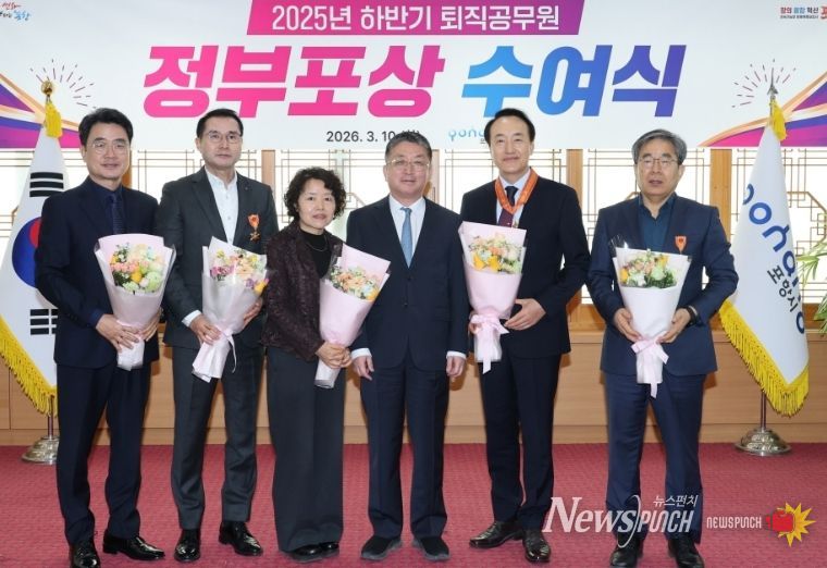 뉴스펀치 박세훈 기자 | 포항시는 10일 시청 대외협력실에서 2025년 하반기 퇴직자에 대한 ‘정부포상 수여식’을 개최했다.
