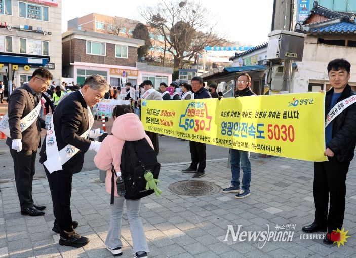 뉴스펀치 김용희 기자 | 영광군은 지난 3월 10일 개학기를 맞아 사고 없는 안전하고 즐거운 등교길이 될 수 있도록 영광초등학교 앞에서 교통안전문화 홍보 캠페인을 진행했다.