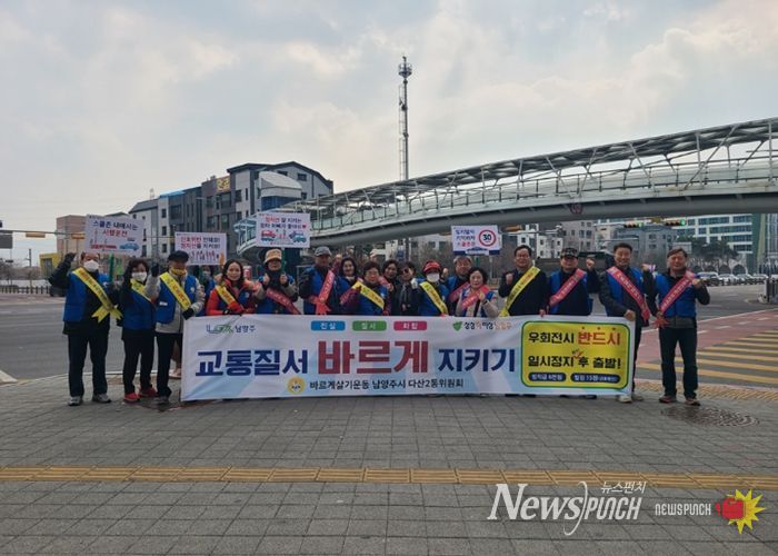 뉴스펀치 박상훈 기자 | 남양주시는 지난 9일 다산2동 행정복지센터가 바르게살기운동 남양주시협의회 다산2동위원회와 함께 다산한강초등학교 사거리에서 민관합동 교통안전 캠페인을 실시했다고 10일 밝혔다.