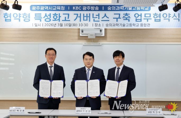 뉴스펀치 최영남 기자 | 광주시교육청은 10일 숭의과학기술고등학교에서 KBC광주방송, 숭의과학기술고등학교와 함께 ‘협약형 특성화고 거버넌스 구축 업무협약’을 체결했다.