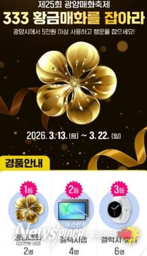 광양시 관계자는 “제25회 광양매화축제는 방문객이 직접 참여하며 즐길 수 있는 다양한 이벤트를 준비했다”며 “황금매화·매실 GET 이벤트부터 스탬프 투어, 매화길 가벼운 걸음(Fun Run)까지 다채로운 프로그램을 체험하길 바란다”고 말했다.