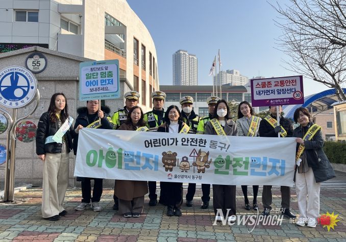 뉴스펀치 김윤걸 기자 | 울산 동구는 3월 10일 화암초등학교 및 문현초등학교 일원에서 어린이들의 안전한 보행환경 조성을 위한 교통지도와 함께 ‘아이 먼저’ 교통 안전 캠페인‘을 했다.