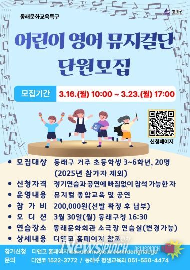 동래구 관계자는 “어린이들이 노래와 춤을 통해 자연스럽게 영어를 배우고, 창의력과 자신감을 키울 특별한 기회가 될 것으로 기대한다”라고 말했다.