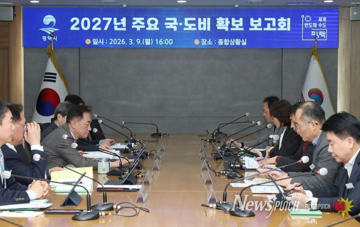뉴스펀치 박상훈 기자 | 평택시는 지난 9일 시청 종합상황실에서 정장선 시장 주재로 실·국·소장과 부서장 등 30여 명이 참석한 가운데 ‘2027년도 주요 국·도비 예산확보 보고회’를 개최했다고 밝혔다.