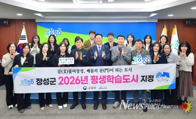 뉴스펀치 김용희 기자 | 장성군이 3년여의 노력 끝에 ‘평생학습도시’로 지정됐다. 군은 10일 교육부가 발표한 ‘2026년 지역 평생교육 활성화 지원사업’ 공모 결과, 신규 평생학습도시에 이름을 올렸다.