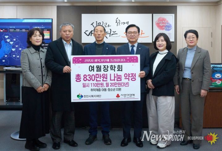 뉴스펀치 이현승 기자 | 천안시복지재단은 지난 10일 여월장학회가 저소득 아동·청소년을 위해 후원금 830만 원을 기탁했다고 밝혔다.