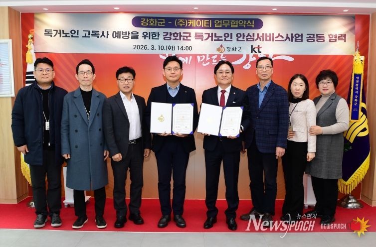 뉴스펀치 정홍균 기자 | 강화군은 지난 10일 KT와 독거노인 안심서비스 사업 추진을 위한 업무협약을 체결했다.
