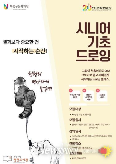 뉴스펀치 정홍균 기자 | 부평구 청천도서관은 오는 4월 8일부터 지역 어르신을 대상으로 문화예술 프로그램 ‘시니어 기초 드로잉’을 운영한다.