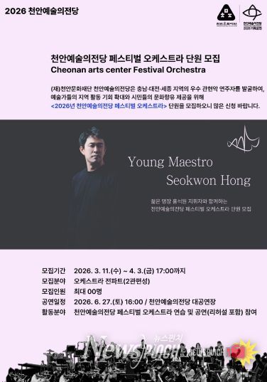 뉴스펀치 이현승 기자 | 천안문화재단은 내달 3일까지 천안예술의전당 페스티벌 오케스트라 단원을 모집한다고 13일 밝혔다.
