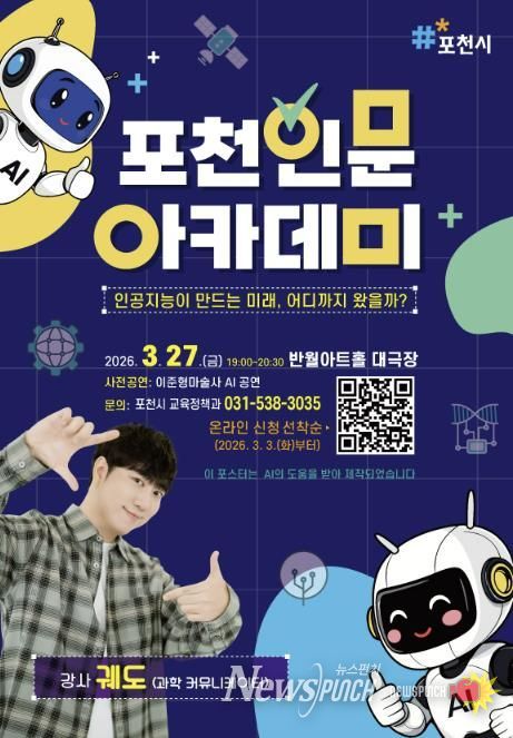 뉴스펀치 박상훈 기자 | 포천시는 오는 3월 27일 오후 7시, 포천반월아트홀 대극장에서 ‘2026년 3월 포천 인문 아카데미’를 개최한다.
