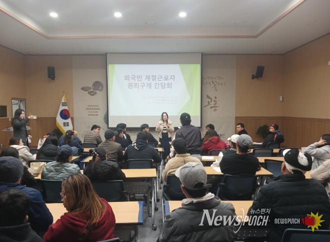 뉴스펀치 김용희 기자 | 고흥군은 지난 12일 고흥분청문화박물관 강당에서 관내 외국인 계절근로자의 인권 보호와 실질적인 권리구제를 위해 ‘외국인 계절근로자 권리구제 간담회’를 개최했다고 밝혔다.