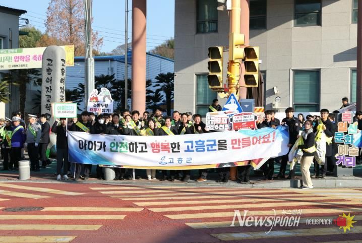 뉴스펀치 김용희 기자 | 고흥군은 13일 고흥동초등학교 앞에서 어린이 교통사고 예방과 안전한 통학 환경 조성을 위한 ‘안전문화 확산 캠페인’을 실시했다.