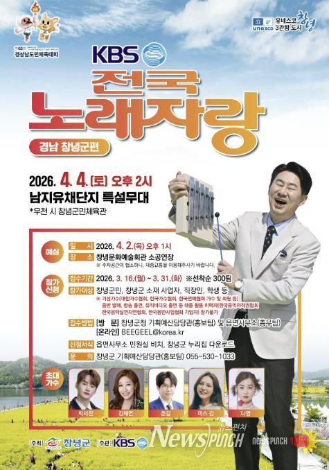 뉴스펀치 박세훈 기자 | 창녕군은 오는 4월 4일 오후 2시 남지유채단지 특설무대에서 대한민국 대표 국민 참여 프로그램 ‘전국노래자랑 창녕군편’을 개최한다.