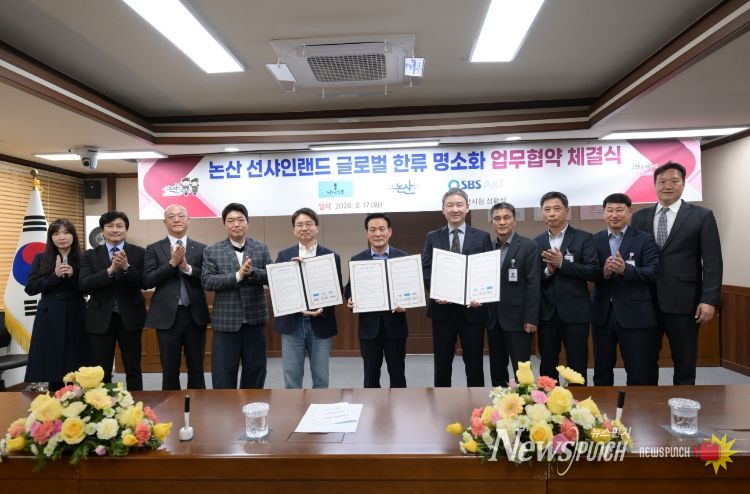 논산시는 17일 ㈜SBS A&T, 드라마 제작사 ㈜낭만크루와 ‘선샤인랜드 글로벌 한류 명소화를 위한 업무협약’을 체결했다고 밝혔다.