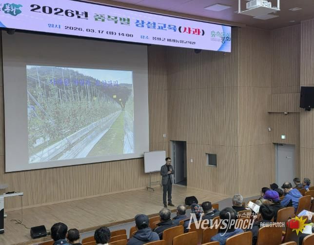 뉴스펀치 박세훈 기자 | 봉화군은 지역 주력 소득작목인 사과의 품질을 높이고 전문 농업인을 육성하기 위해 17일 농업기술센터 미래농업교육관에서 사과원 조성 및 재배기술 교육을 개최했다.