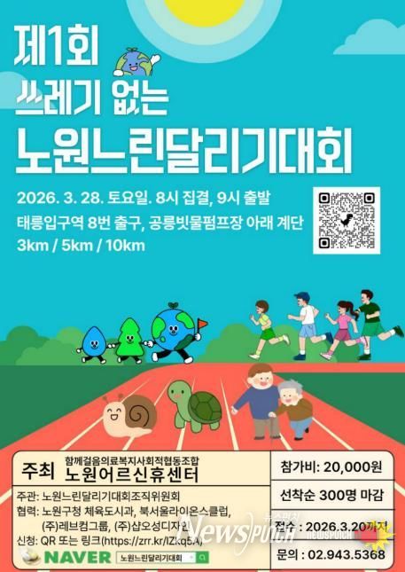 뉴스펀치 박상훈 기자 | 서울 노원구가 기록 경쟁이 아닌 ‘함께 완주하는 가치’를 나누는 ‘제1회 쓰레기 없는 노원느린달리기대회(노원 슬로우런)’를 개최한다고 밝혔다.