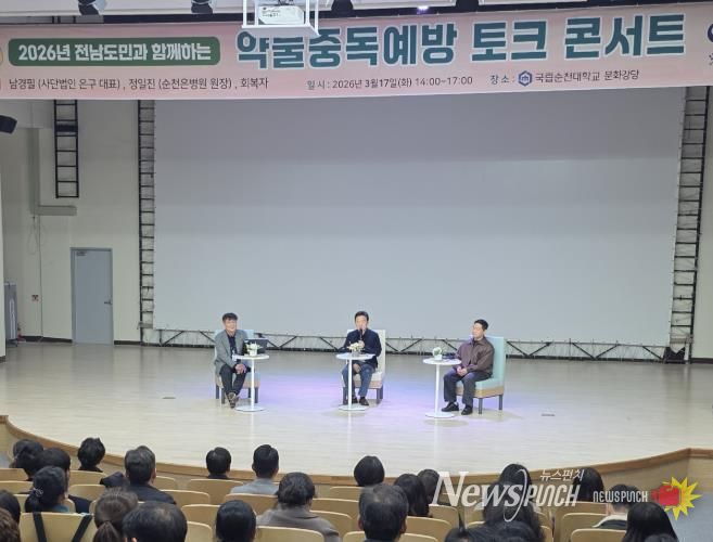뉴스펀치 김용희 기자 | 전라남도와 한국마약퇴치운동본부 전남함께한걸음센터는 약물중독예방 토크콘서트를 지난 17일 국립순천대학교에서 열고 마약 중독의 위험성과 회복 지원 방안을 논의했다.