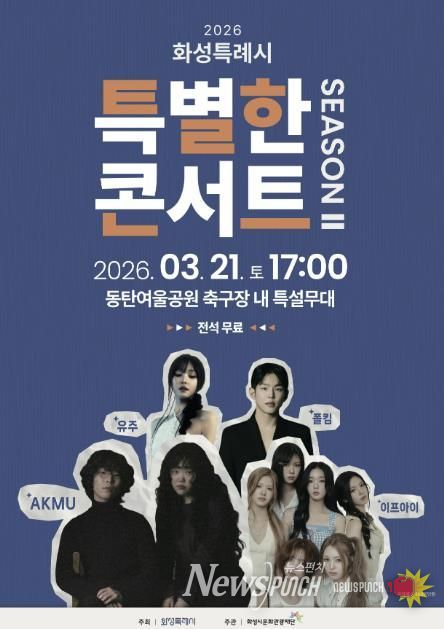 뉴스펀치 박상훈 기자 | 화성특례시가 3월 21일 제26회 화성특례시민의 날을 맞아 동탄 여울공원 축구장 내 특설무대에서 ‘화성특례시 특별한 콘서트 시즌2’를 연다.