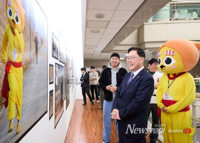이날 강수현 양주시장은 사진작가 박철, 시 SNS 캐릭터 별산과 함께 전시장을 둘러보며 작품을 관람했다.
