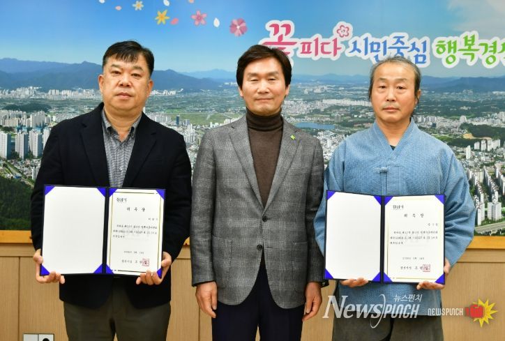 뉴스펀치 박세훈 기자 | 경산시는 18일 시장실에서 농업 분야 현장 전문가인 박정수 위원과 지역 환경 현안에 대한 전문성과 식견을 갖춘 안수환 위원을 정책 자문 위원으로 추가 위촉했다고 밝혔다.