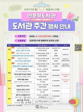 해운대구는 2026년 ‘도서관의 날’ 및 ‘도서관주간’을 기념해 오는 4월 한 달간“도서관 속 작은 펼침, 세상을 여는 큰 열림”을 주제로 풍성한 독서문화 행사를 개최한다고 밝혔다.